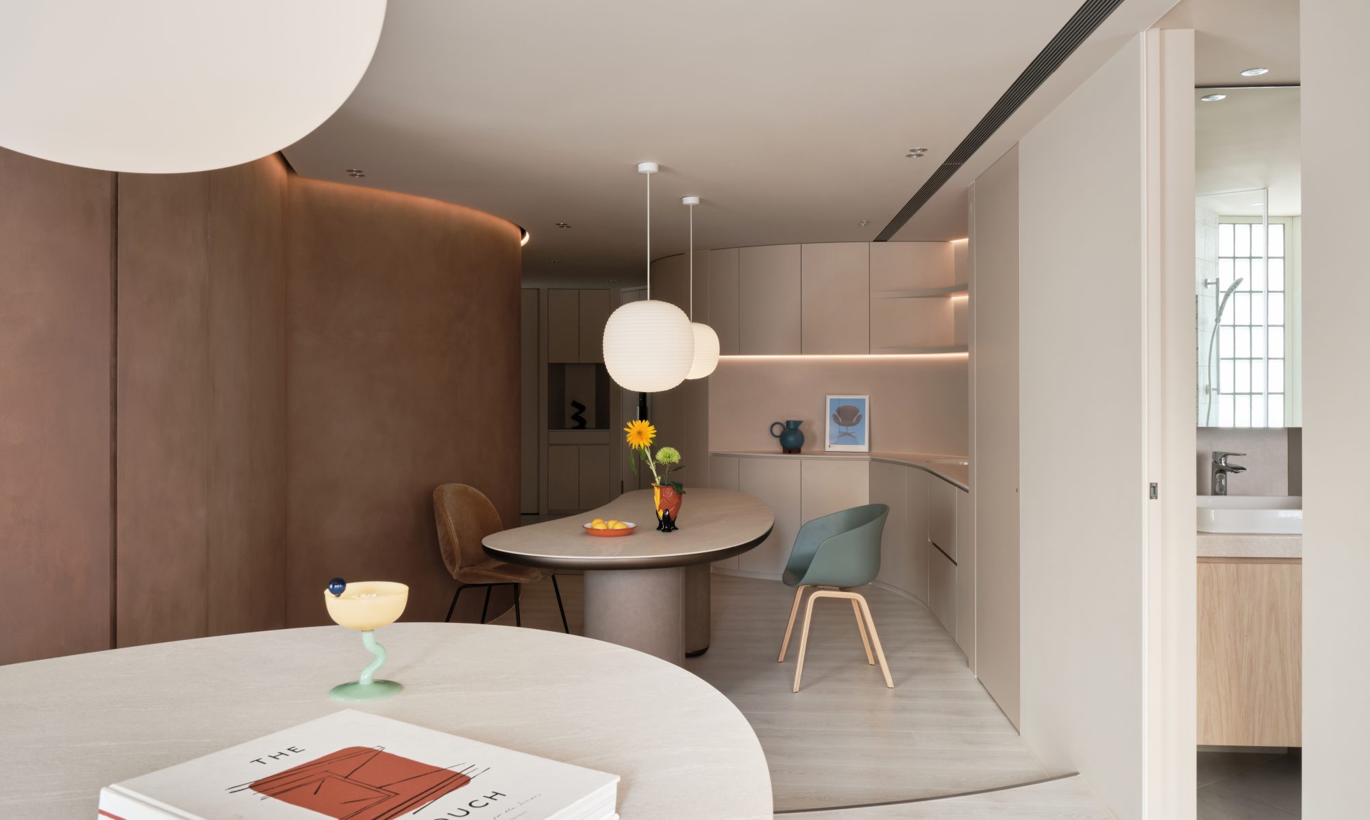 如此,以各種材質的不同特性、及質感搭配,讓空間雖在一種顏色系列為主的空間中,也能擁有豐富的層次變化。